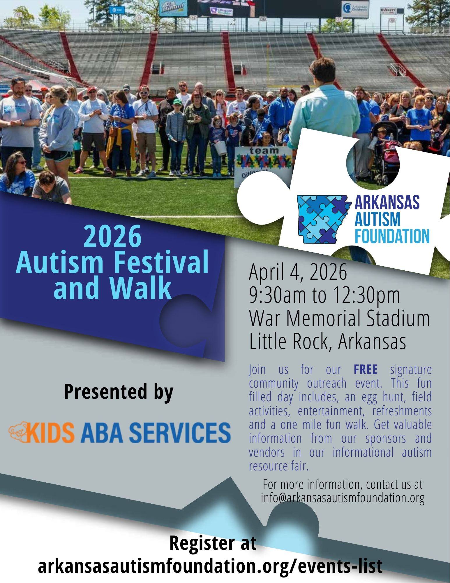 Join the Arkansas Autism Foundation as they host the annual Autism Walk & Festival at War Memorial Stadium in Little Rock!